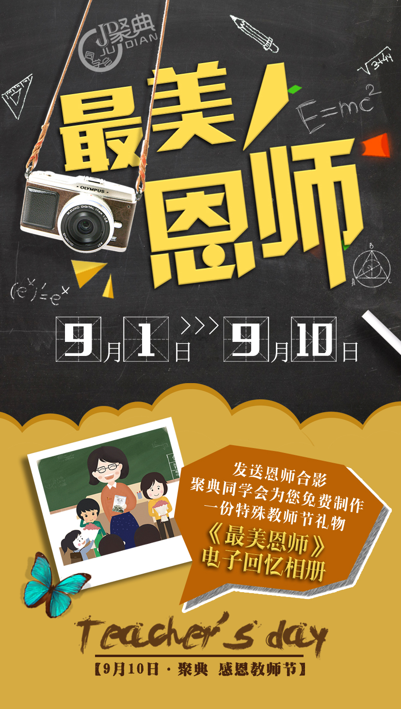 A 学生感恩老师:以班级为主体,全体同学发送自己与恩师(任意一位班级老师)的合影照片,在截止时间前发送至【聚典同学会】指定的邮箱(邮箱不压缩像素,点对点更便捷安全)参与本次教师节感恩活动。