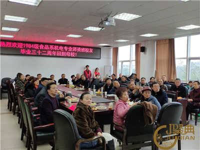 11月17日上午,1984级食品系机电专业师资班校友毕业三十二周年返校纪念活动在食品与生物工程学院5D-419会议室举行,校友总会办公室主任王丽娟,食品与生物工程学院党委书记兼副院长周彬儒,院长陈祥贵,党委副书记兼副院长李鹤,1984级机电专业班主任张前富老师,教师代表陈维森老师以及37位1984级机电专业校友参加了活动。1984级机电专业师资班张天勋主持了本次活动。