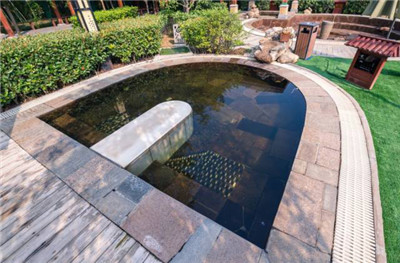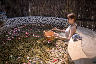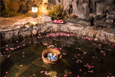 室内外共有32个汤池,其中室内汤池以功能性动感池区为主,有六和汤屋、冰桶、spa功能池、八方针刺周身浴、蘑菇浴、仙女散花、干蒸、湿蒸房等;室外汤池则以天然静态池区为主,用天然温水温差调和出的温泉星罗棋布的温泉汤池点缀于花卉绿植间。
