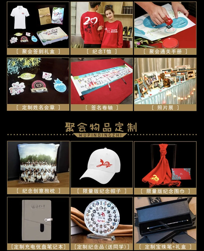 ▶ 线下主营品牌业务:“聚典同学会”为老校友老同学老战友提供会前、会中、会后一条龙服务。