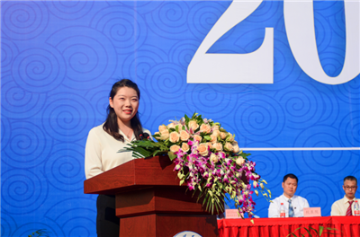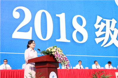 教师代表、地质灾害防治与地质环境保护国家重点实验室范宣梅研究员对2018级全体同学的到来表示热烈欢迎。作为一名年轻教师,她深情回顾了自己在成理与国外的求学经历,学成回归母校从教,她和团队一起对地质灾害进行深入系统研究,为防灾减灾贡献中国智慧。她希望全体新生在大学四年中做到“尊重内心,不要轻言放弃;不负芳华,做最好的自己;敢于创新、承担时代使命。”