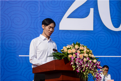新生代表、管理科学学院电子商务专业郑斯邈表达了自己对未来大学生活的无限向往与期待,希望2018级学子能在四年的成理学习生活中留下属于自己的专属印迹。他与全体新生相约,要认真感悟学校的校训和校风,体味传承六十余载的精神和理念。将“穷究于理、成就于工”的校训融入血液,“不甘人后,敢为人先”的进取精神深入灵魂;更要敢于心怀梦想,勇于追求梦想。用日夜的苦读笔耕、不断的实战磨砺、深度的切磋思索来铺就追梦之路。