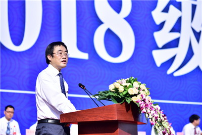 校长龚灏代表学校向全体新生表达了诚挚的祝贺和欢迎。他借用孟子之言与大家分享:君子有三乐,一乐家庭平安,二乐心地坦然,三乐得天下英才而教育之。他说,“在成都理工大学全面推进‘双一流’建设的新时期,你们的到来,为学校注入了新鲜血液和蓬勃生机。”龚灏介绍了成都理工大学建校62年来的恢宏发展历程以及历届理工人取得的卓越成就。他表示,学校有两个国家重点实验室和位列ESI全球排名前1%的地球科学学科,有全国高校黄大年式教师团队和国家级实践教学平台,有蓬勃发展的国际学术合作与交流,有优美的校园环境、完善的配套设施、优质的生活服务。同学们可以参与学科前沿探索,勇攀科学高峰;对话专家名师,获取丰富知识,提升综合素质;体验不同文化的魅力和思维碰撞。他动情地讲到,“‘青春须早为,岂能长少年’,大学也许是你们求学之路和漫漫人生的一个短暂的阶段,但一定是你们成就自我和开创未来的一段重要的旅程。”