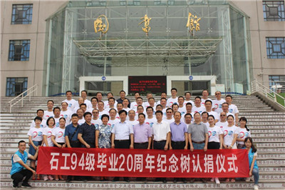 7月14日上午,还举行了石工94级毕业20周年纪念树捐赠仪式,郭建春代表学校接受了捐赠,向校友代表颁发了捐赠证书并和校友代表一起为纪念树揭了牌。