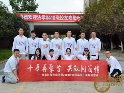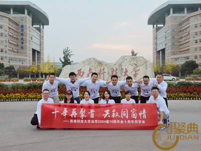 十年前,他们背负着行囊与梦想,从这里扬帆远航;十年过去,他们拥有了工作和家庭,归来依然意气风发。换上简单干净的白色T恤,重温校园时光,共寻青春记忆。“法学2004级10班回来报到啦!”